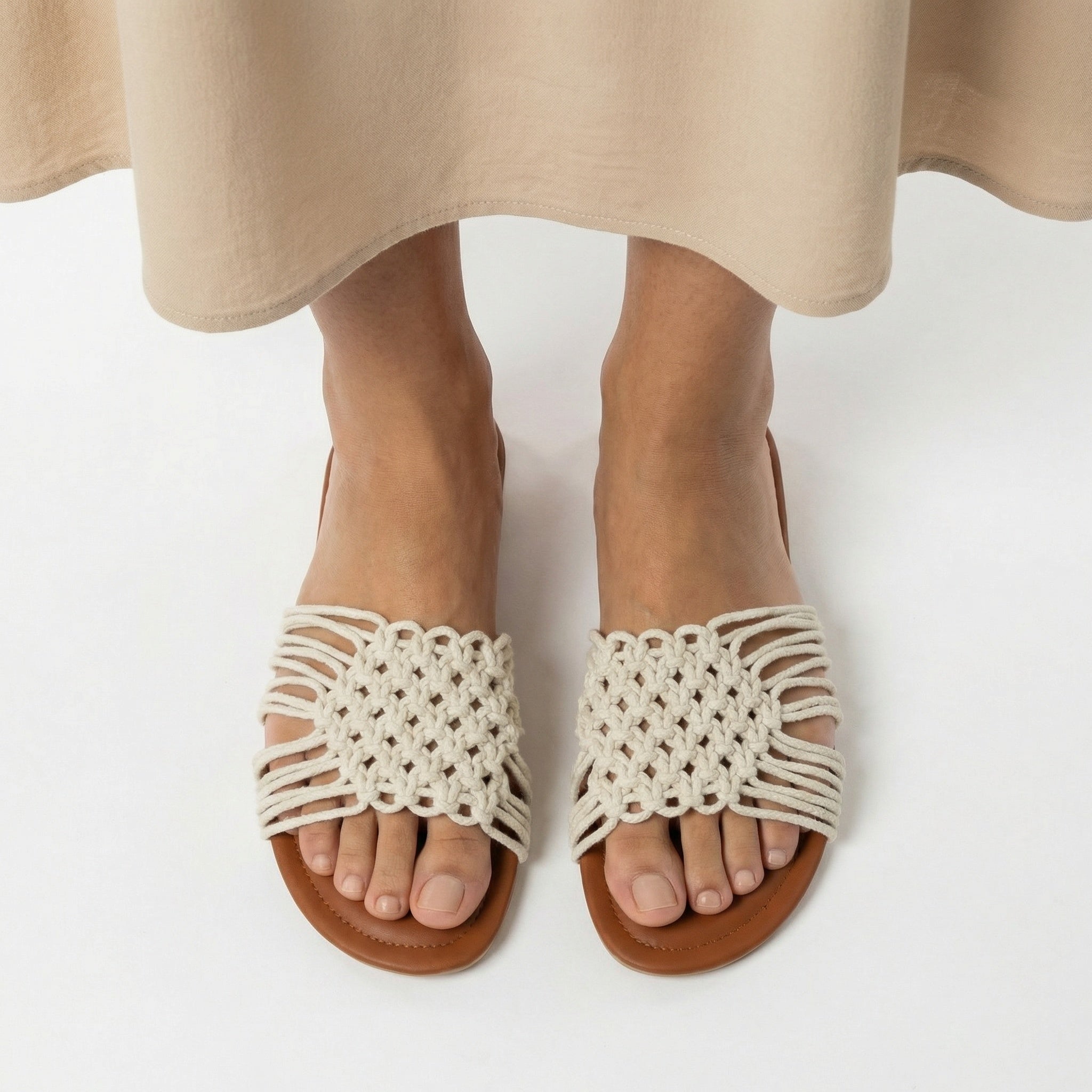 Soft elegance meets artisanal beauty in “Serena” – handcrafted macramé slippers designed for effortless summer sophistication.